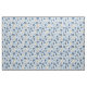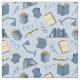 Pale blue fabric with a cool pattern of blue books, table lamps and reading glasses