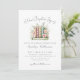 A New Chapter Begins. Celebrate the bride-to-be with this cute and elegant book-themed bridal shower invitation. At the top, “A New Chapter Begins” is written in a soft handwritten script, setting a sweet and joyful tone for the celebration. Just below, a watercolor stack of books appears in pastel shades of pink, teal blue, orange, and yellow. Delicate pink flowers and soft green leaves surround the books, creating a charming and feminine focal point.