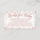 Adorable elegant rose gold flat printed insert, Book Request for Baby Shower Invitation insert card with elegant pink confetti background and dark grey text. This cute little saying poem added to your baby shower invitation insert, suggests guests sign and bring books instead of cards for the baby shower gifts for the little one on the way.