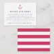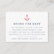Slip these petite cards into your baby shower invitations when requesting books in lieu of cards. Nautical design features navy blue lettering with a small pink anchor illustration at the top. A sweet poem explains the book request: "just one request, we hope it's not hard // Please bring a book instead of a card // By signing your name, we'll remember and share // your sweet gift, even when you're not there." Personalise with the guest of honour's name and shower date along the bottom.