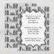A Bar Mitzvah design with a pattern of books on a bookshelf. Within a black and white classic style shape there is custom text to be personalised.