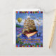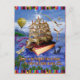 This beautiful, original fantasy postcard is based around the Emily Dickinson poem that begins, "There is no Frigate like a Book To take us Lands away." The quote appears at the bottom, below a masted sailing ship made of an antique book. The words from the poem are scrawled throughout. They're torn-looking on the sails, they wrap around the balloon in the distance, and they decorate the wings of a dragonfly that has a pencil body. They even faintly appear on the faded rainbow. Meanwhile, book seagulls fly away while a killer whale and a purple squid surround the book ship. It's a pretty, surreal scene for any book lover, avid reader, writer, English teacher, librarian or bookstore owner. The sides are bordered in a bookshelf pattern.