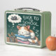 This charming lunchbox showcases a sleepy cat curled up on a pile of books dreaming of mice. The design celebrates a love of reading and feline companionship. "BACK TO SCHOOL" is written in a classic serif font. Ideal for bookworms.