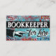Colourful arty Bookkeeper business cards in turquoise, aqua, red, yellow. Bookkeeper for hire business cards.