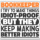 Funny Bookkeeper Sayings "Bookkeeper I Try To Make Things Idiot Proof But They Keep Making Better Idiots". Grab this Funny Bookkeeper design as a funny gifts for an awesome mum, dad or friend.