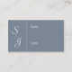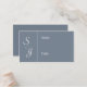 Slate blue reception seating cards. Bride's and Groom's initials on front along with their names and wedding date on back.