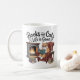 Adorable cat reading books by fireplace coffee mug perfect for cat lovers and book lovers! Features a cozy cat reading in an armchair. Great gift for birthdays or Christmas. Microwave and dishwasher safe.