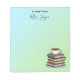 Unique teacher notepad design featuring a charming stack of books and coffee cup. Customise with your teacher's name for a thoughtful and practical gift.