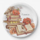 Books And Flowers Round Paper Plate