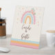Books and Gifts Rainbow Baby Shower Pink Pedestal Sign