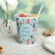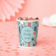 Add a special personalised touch to book themed parties with these paper cups. They feature illustrations of bookmarks set against a light mint green background with your own custom message at the centre.