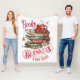 A fun and cheerful Christmas holiday design showcases a stack of books topped with a pair of glasses, a red and green scarf, and a cup of hot cocoa with whipped cream. Surrounding the books are holly leaves, candles, and stars. The colourful text reads: "Books, blankets, and hot cocoa." This design is available on a variety of products, making it a perfect gift for book lovers.