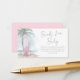 Help build a library filled with love! On the right side, a beautifully hand-painted watercolor design features a pink surfboard standing next to a green palm tree, with soft sand and ocean water behind them. The relaxed beach scene adds a breezy, coastal vibe to your baby shower.