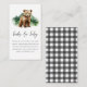 Presenting our charming books for baby enclosure cards designed for a bear-themed baby shower! These delightful cards showcase a watercolor illustration of a sweet baby bear set against a backdrop of rustic mountains, all set on a pristine white background. The reverse side features a classic black and white plaid design, adding a touch of timeless charm.