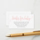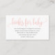 A cute and simple Books For Baby enclosure card. Let your baby shower guests know that you're requesting books instead of cards. This enclosure card features delicate pink lettering and matches perfectly with the Baby Bash invitation in this collection. To add different wording, just select the "Personalise" button on the right.
