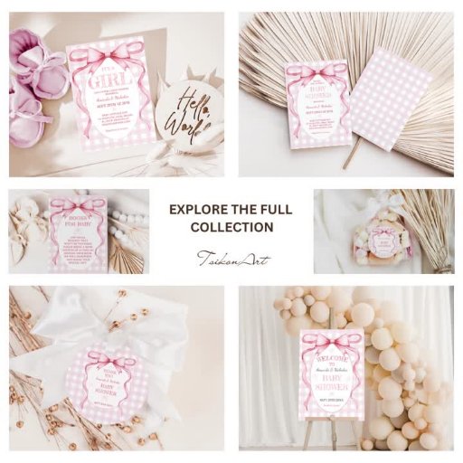 Minimalist , simple , elegant, cute blush pink bow themed baby girl shower book request card.