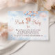 A sweet baby shower design featuring an adorable teddy bear holding pastel blue and blush balloons with soft clouds and star accents. The “Books for Baby” wording makes it a lovely choice for asking guests to bring a favorite book for the little one instead of a card. With its gentle watercolor style and dreamy pastel palette, this design is perfect for a baby boy celebration or a charming teddy bear baby shower theme.