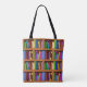 This original all-over-print tote bag design for bibliophiles / proud bookworms has a colourful bookshelf pattern made up of 25 repeating books that lean or stand straight, all on a shelf with a wooden look. This bag is perfect for a librarian, book collector, English teacher or any avid reader. The design appears on both sides.