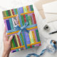 Rows of books on book shelves to customise, to personalise by changing to your name on any background colour