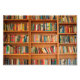 School library educational books on a brown wooden bookshelf for teachers, students and bookworms.