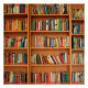 School library educational books on a brown wooden bookshelf for teachers, students and bookworms.
