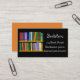 A business card suitable for a bookstore, or online book products business. Suitable for a shop or online business. This card features a whimsical cute books illustration of cartoon books on a bookshelf. Background colour and text can be fully customised to suit you needs.