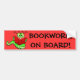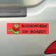 Bookworm Bumper Sticker reading: BOOKWORM ON BOARD. Text is customisable so you can change it to text of your choice. Background colour can be changed to colour of choice (customise-edit-background).