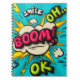 Boom pop art cloud bubble. Smile, wow, pow, cool, Notebook