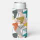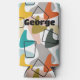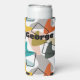 This can cooler has a mid-century modern design of boomerang shapes and cork shapes in retro colours.