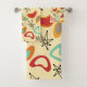 This towel set has a mid-century modern design of boomerangs in 70s colours and stars.