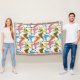 This throw blanket has a mid-century modern design of boomerangs scattered about with segments crossing them.