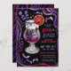 This Halloween Costumes and Cocktails invitation features hand drawn illustrations such as a black magic cocktail with a spooky skull and blood orange garnish with magical spooky swirls as a border with a colour palette of purple, black and red. Invite your guests to boos and booze this halloween. On the back of the invitation is a spooky swirl design with skulls, bats and spiders. You can customise all of the text on this invitation. See the whole matching collection.