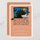 This cute "Boos & Booze" halloween party invitation card features an eyeball cocktail, bats, and spiders in front of a haunted house on orange background framed by a white border. The reverse side features orange polka dot patterns. Personalise it for your needs. You can find matching products at my store.
