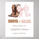 Boots & Bows Baby Shower Welcome Sign Poster featuring a pair of western cowboy boots and a cute girly ribbon bow.