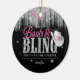 Get the party started with these fun "Disco Bachelorette" ornaments in sparkling silver and pink on a black background. The eye-catching "Boots & Bling" typography, glittering cowgirl hat are accented by a silver fringe border. Add your name and event date using the provided template. Search ID925 to see other products in the trendy collection.
