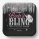 Get the party started with these fun "Disco Bachelorette" paper plates in sparkling silver and pink on a black background. The eye-catching "Boots & Bling" typography, glittering cowgirl hat are accented by a silver fringe border. Add your name and event date using the provided template. Search ID925 to see other products in the trendy collection.