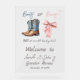 Elegant What will Baby Be Boots or Bows Themed Gender Reveal Acrylic Welcome Sign featured watercolor pink bow and blue cowboy boots. Matching products you can find in the collection.