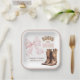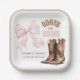 Boots or Bows Gender Reveal Paper Plates featuring a pair of western cowboy boots and a cute girly ribbon bow. What will baby be?