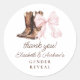 Boots or Bows Gender Reveal thank you stickers featuring a cute pink ribbon bow.