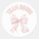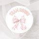 TEAM GIRL - Boots or Bows Gender Reveal voting stickers featuring a cute pink ribbon bow. Place your bet
