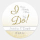 Booze, Bubbly & Bling, I DO Gold Engagement Party Classic Round Sticker