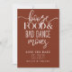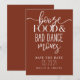 This save the date features a rustic background and "booze, food, and bad dance moves" to create a fun way to tell your guests your wedding date.