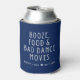 Fun wedding keepsake favours for your wedding guests. Beer cosies featuring a navy blue and white text design that reads - Booze, food and bad dance moves. Customise with your names and wedding date. You can also add a short thank you message to the bottom.