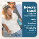 A humourous way to invite your guests to save your wedding date which is fully customisable. The typography is all aligned to the right, with white text on turquoise and the amusing headline Booze Food And Bad Dance Moves. Easily personalise the text and simply upload your favourite photo of you both to replace the sample.