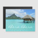 Magnetic photo postcard of a luxury overwater bungalow resort in the clear blue lagoon of the pacific island of Bora Bora, near Tahiti in French Polynesia with the text: 'Bora Bora, French Polynesia'.