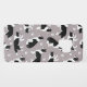 Cute black and white border collies sit, stay and rollover on a grey background with pawprints, a fun dog themed pattern.