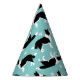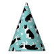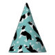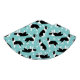 Cute black and white border collies sit, stay and rollover on a blue background with pawprints, a fun dog themed pattern.