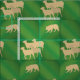 This herding design use shadow silhouettes of a Border Collie herding Sheep. The dog and sheep silhouettes march across a background of various tones of green.