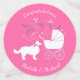 Include the big brother or sister fur baby in the celebration with this adorable Border Collie dog baby shower design! Perfect for a puppy lover with a baby on the way. The Collie is next to an adorable vintage carriage. The pink makes it perfect for a girl baby shower!
