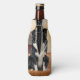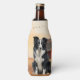 A beer or can cozy for poolside, a fun Father's Day gift for the dog dad, too. A Border Collie dog sitting in a field at the ranch with a red barn and birds in flight in the background for a great country western cowboy theme.